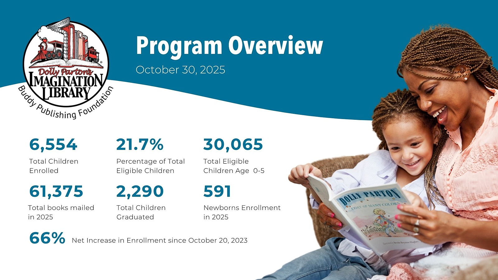 Through our partnership with Dolly Parton’s Imagination Library, we are working to send every child in Aurora from birth to age five a new book each month. Research has shown that a child with 25 books in their home complete an average of two additional years of schooling compared to their peers without books in their home⁽²⁾. Our goal is that every kindergartener begins school with 60 books in their home.
