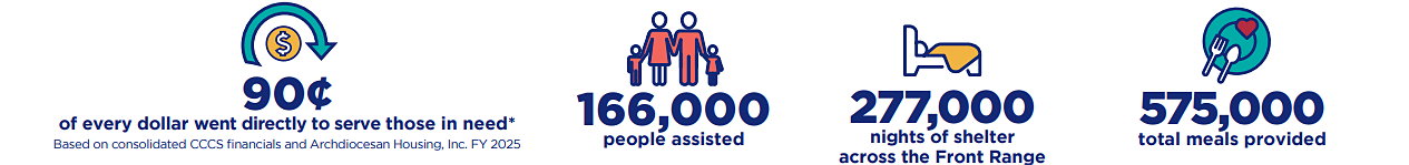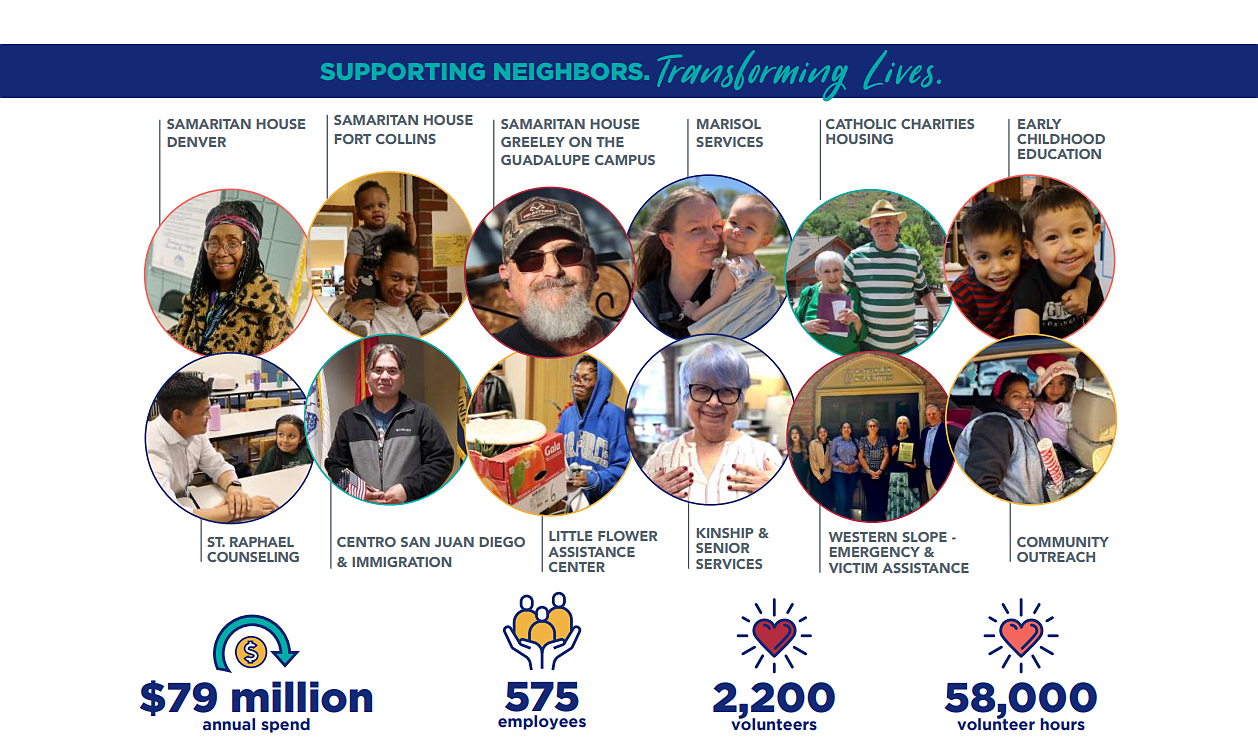 Catholic Charities of Denver is one of the largest and most effective social service organizations in Colorado, founded in 1927. We serve tens of thousands of people in crisis annually. We offer affordable housing, early childhood education, counseling, rent and utility assistance, shelter, food and clothing, case management, family and senior services, women's services and much more. We collaborate with corporate partners, local businesses, nonprofit organizations, government agencies, medical facilities, educational institutions, parishes and other community partners. We work to alleviate and find solutions to some of the most pressing challenges that women, men and families in our community face each day.