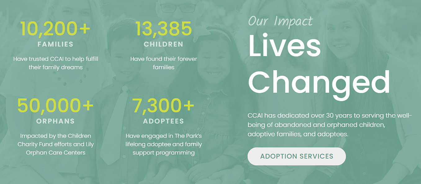 CCAI (Cherish Children Adoption International) exists to promote and serve the well-being of abandoned/orphaned children. This mission has three pillars: