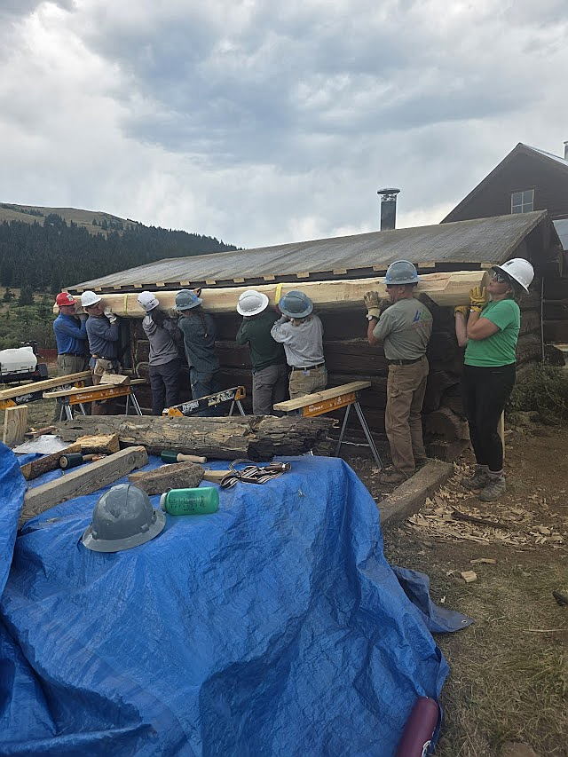 "I am proud of the work we accomplished in the two sessions. David is such a creative problem solver! I was amazed at the solutions he came up with. The whole crew really contributed to a “work hard and have fun” atmosphere," - Volunteer comment from the Hunters Creek Miner's Cabin project near Aspen, 2025