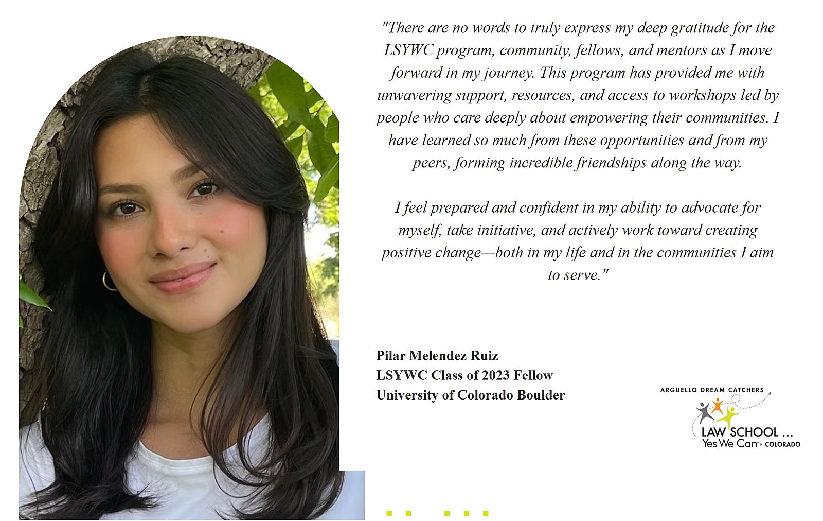 could create a change for families like hers. She recognizes the social injustices in the world and has fortified her dream of becoming an immigration lawyer. Now, as a proud LSYWC Fellow, she is excited to take the next step. She knows that the pathway to being a lawyer is difficult but not impossible. With LSYWC, she will grow into her dream of being an attorney and advocate for her community.