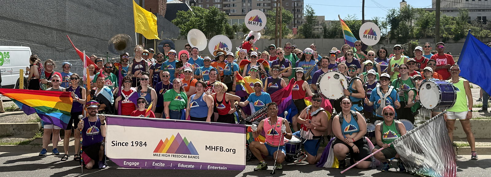 The Mile High Freedom Bands are committed to making positive contributions to the LGBTQ+ community and allies through musical events and activities that engage, excite, educate, and entertain audiences while supporting performers of all abilities.