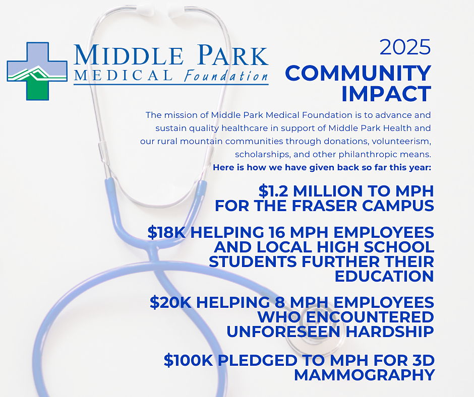 Each year, MPMF enhances the work of Middle Park Health by raising the financial resources to help keep facilities and technology first rate, help fund programs for patients, provide financial relief to MPH employees who experience unforeseen troubled times, and provide scholarships to the community. A healthy hospital is truly the foundation of a healthy community.