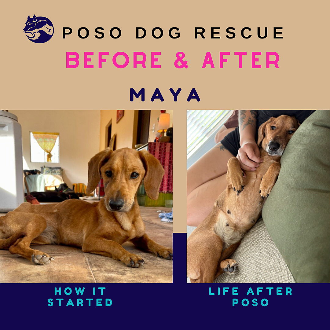 Maya came to our rescue from a small town outside of Puerto Vallarta, Mexico. She once was owned by a family, but they moved away and left her. From there, she survived on the streets by herself, getting scraps of food from the locals.