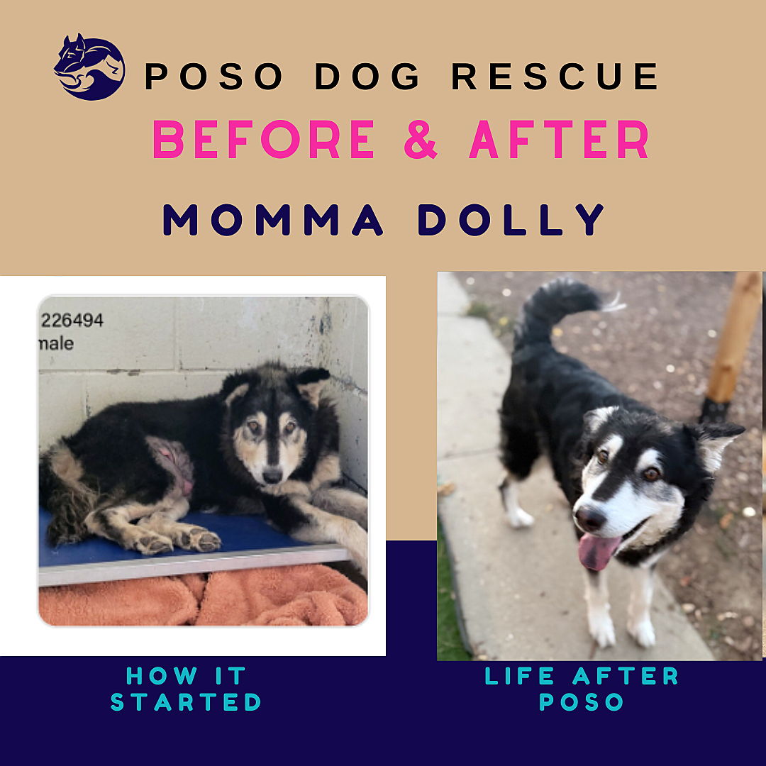 After eight months with our rescue, and hundreds of training hours by our private trainers, she now walks on a leash, plays with other dogs, and looks for pets and affection from her human family. She has since put on a healthy weight and has a full coat, that is thick and curly. We expect Momma Dolly to continue to live a full, active, healthy life in the Denver, Colorado area. Currently, Momma Dolly is in a foster to adopt Home.