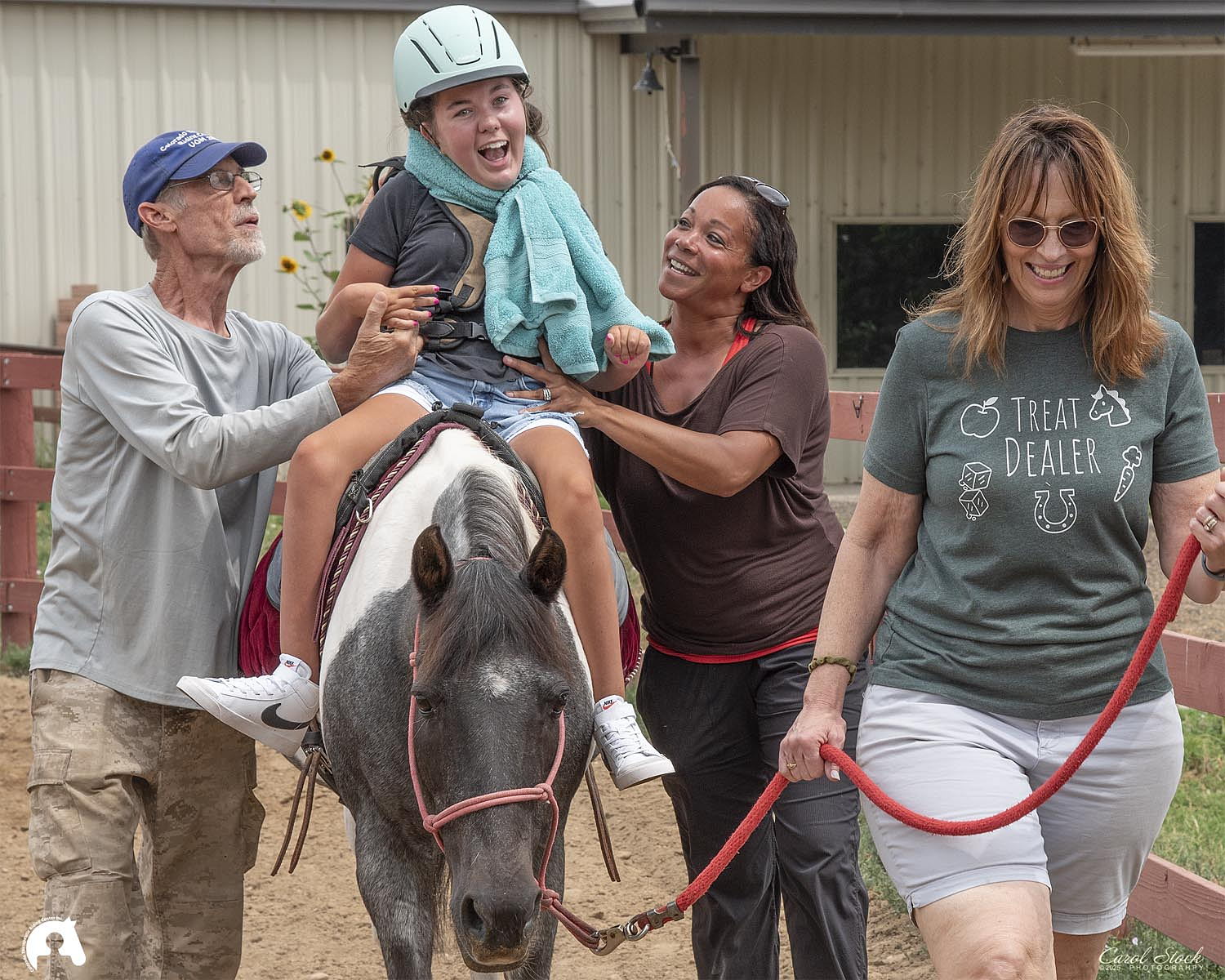 Her mom remembers a powerful moment when Abigail reached out to hold her occupational therapist, Dani’s hand: “A small gesture that spoke volumes about her growing trust and connection.” Dani adds, “Riding brings joy to Abi each week. She smiles, laughs, and grows more confident with every ride.”