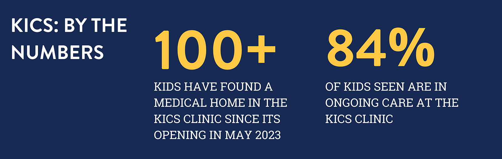 The KICS clinic is a medical home for children in foster care. The KICS care model is trauma-informed, culturally responsive, and focuses on both biological families as well as foster and kinship families. The clinic focuses on timely access to primary care, mental behavioral health, and dental health services.