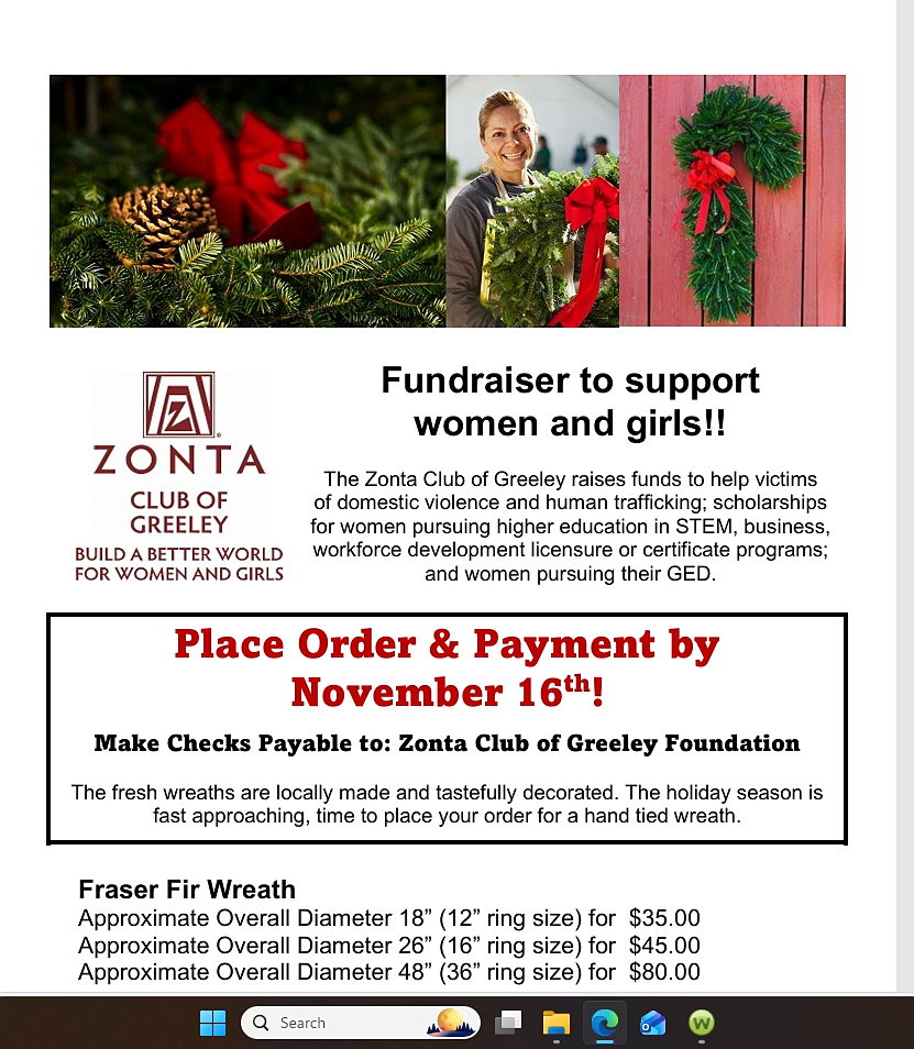 Zonta Club of Greeley FoundationHoliday Wreath fundraiser 2025
