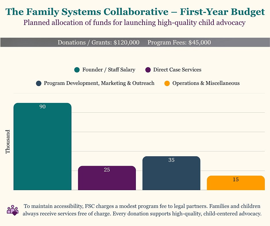 This is our first fundraising initiative, designed to establish a sustainable foundation for high-quality child advocacy. We aim to raise $150,000–$175,000. These funds will support: