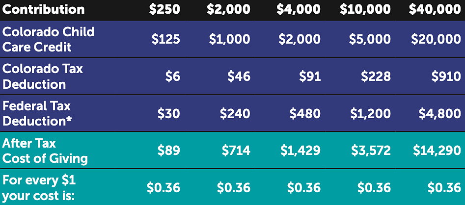 Donations of $250 or more to IHDF may qualify for a 50% Colorado Child Care Contribution Credit