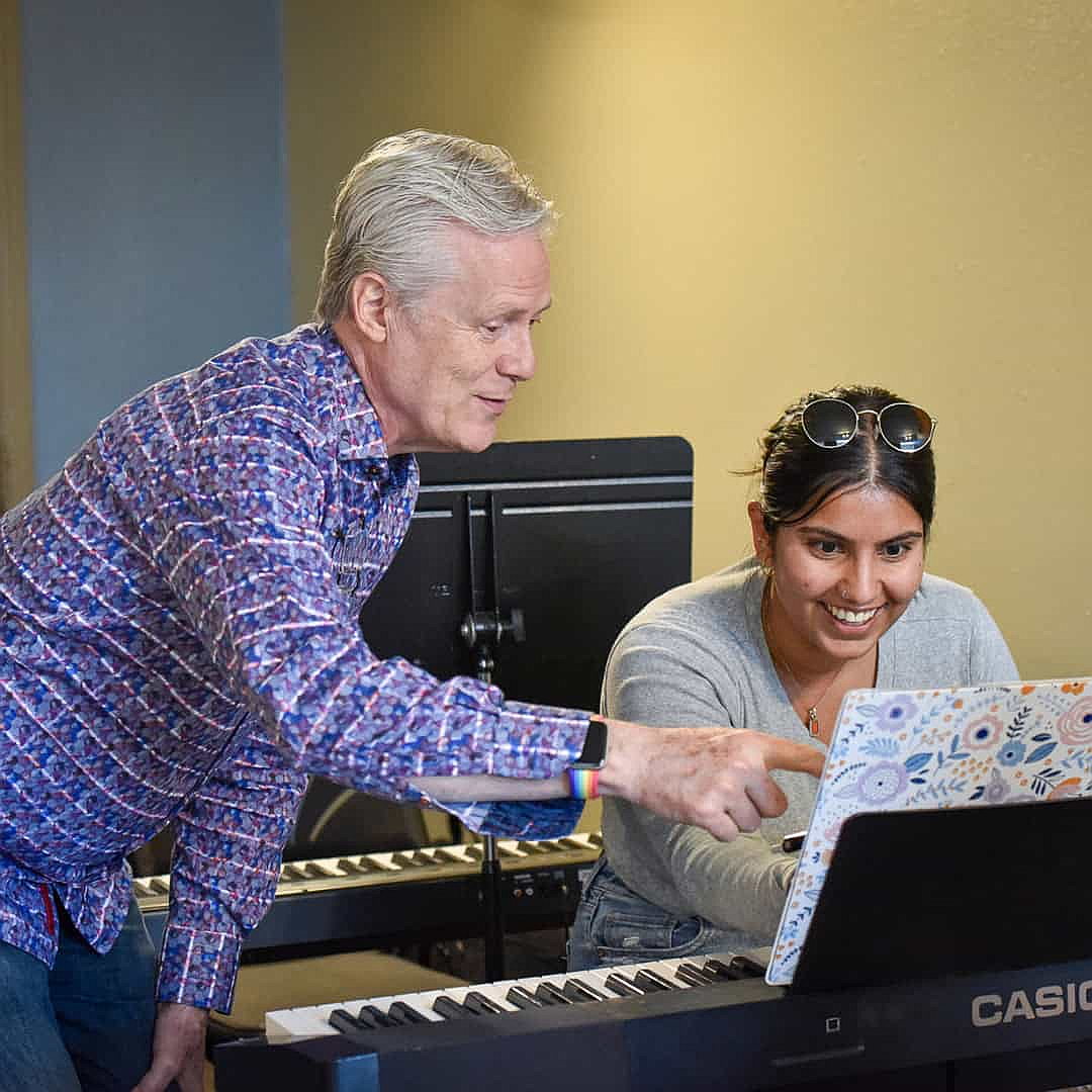 Take Michelle. Three years ago, she walked into an open house feeling uncertain but curious. She had been trying to teach herself guitar, but it wasn’t joyful. So she boldly signed up for her first class. Having started her journey as a listener and appreciator of music, she wasn’t sure if she’d be the one person who couldn’t keep up. But by the end of the session, she wasn’t just playing music, she was playing with people.